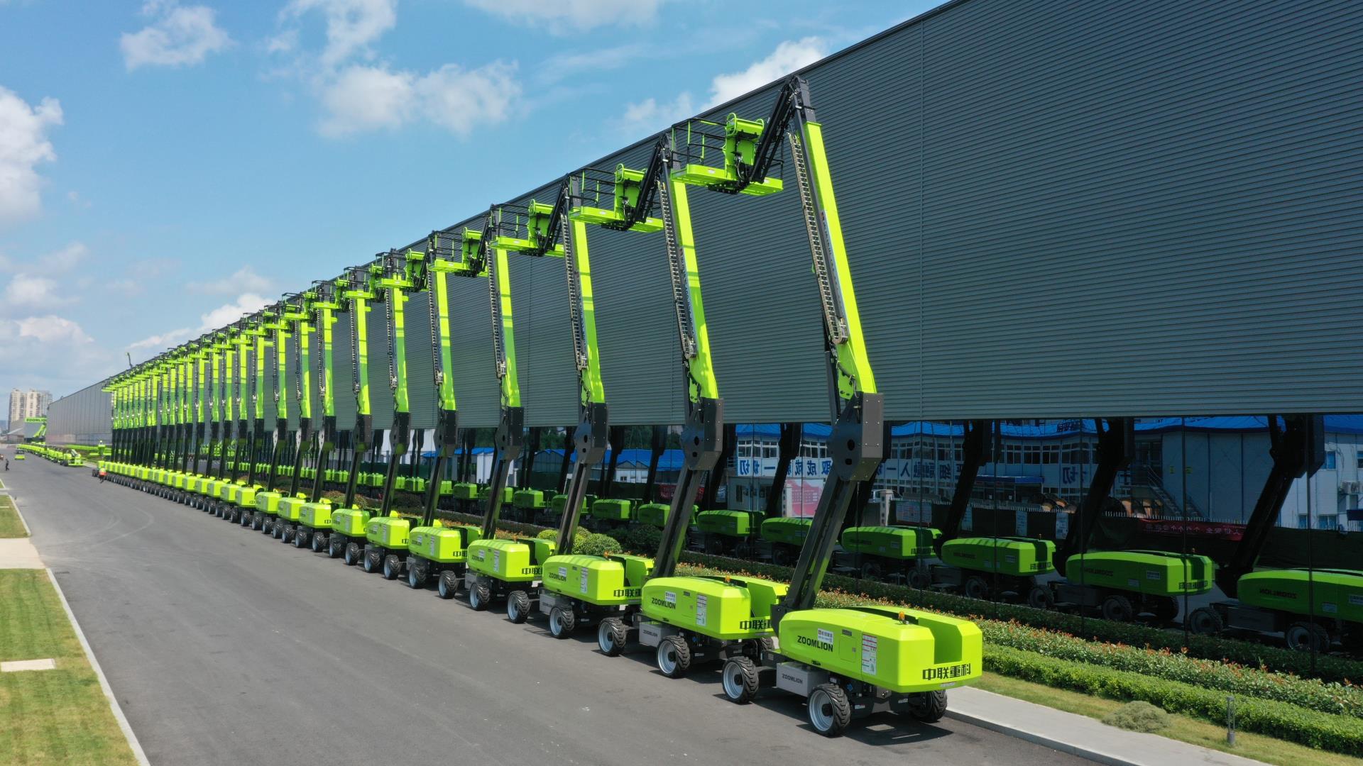 ▲排隊(duì)裝車(chē)的中聯(lián)重科智能高機(jī)產(chǎn)品