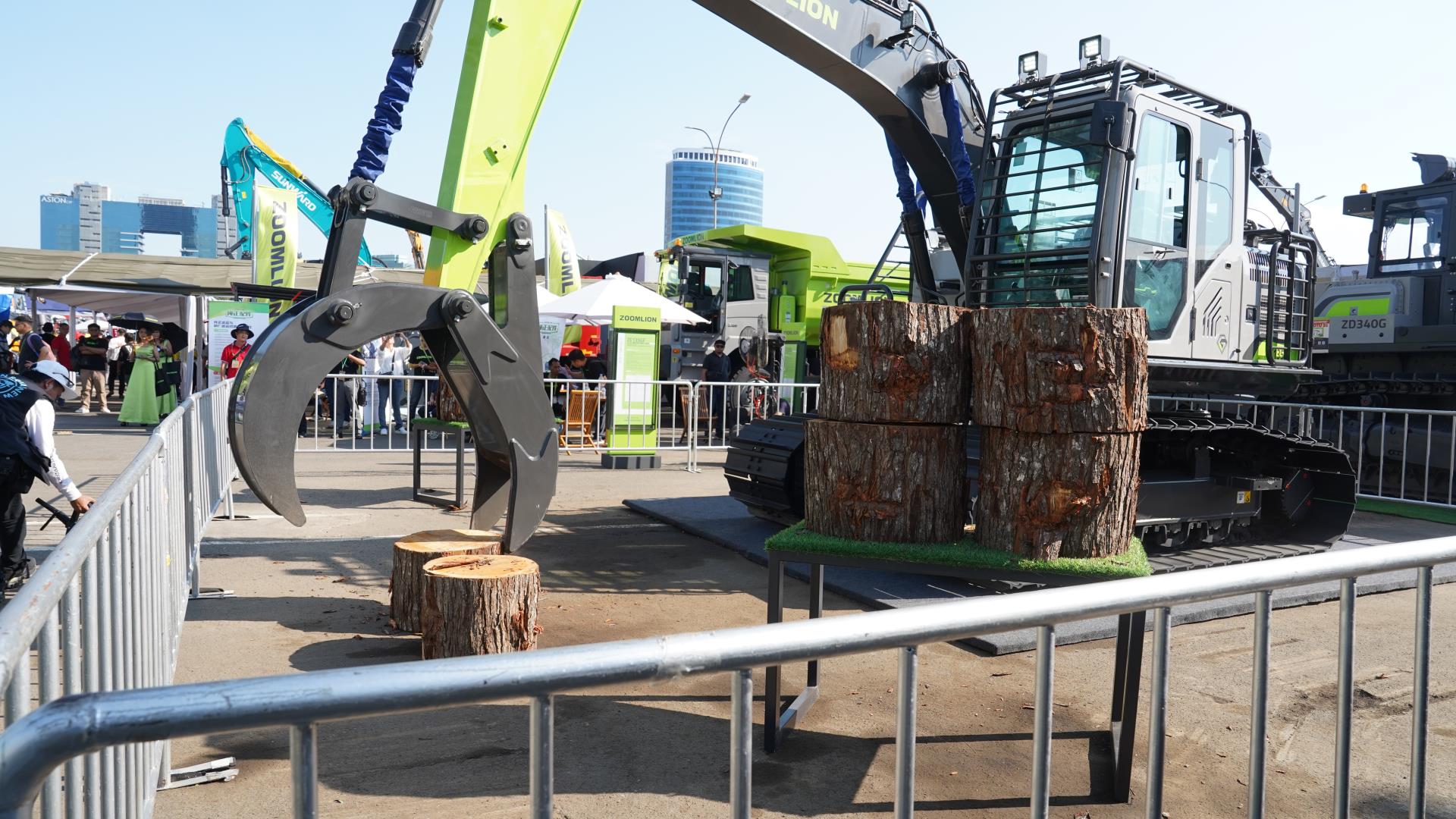 以此次展示的森林型挖掘機ZE135GF為例,其針對印尼當(dāng)?shù)毓r對整機重量、抓斗容量、防護、程序做了定制化改進,包括對主板厚度加強、應(yīng)用負載動態(tài)自匹配技術(shù)和超低怠速系統(tǒng)、定制化生物燃油過濾等,具有高通過性和高穩(wěn)定性,工作效率也大幅提高。展會上,這款產(chǎn)品還進行了現(xiàn)場演示,伸臂、精準(zhǔn)抓取、壘放,一系列動作一氣呵成,順滑的操作性能引來現(xiàn)場客戶的陣陣掌聲。