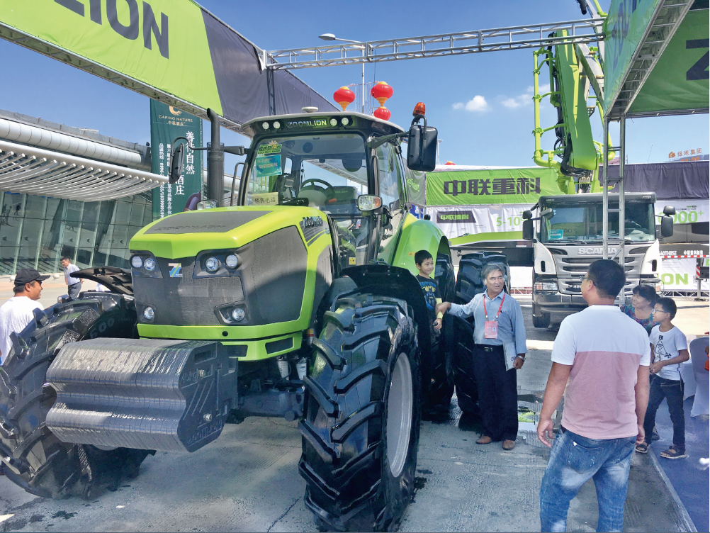 ▲客商參觀中聯(lián)重科高端大馬力拖拉機