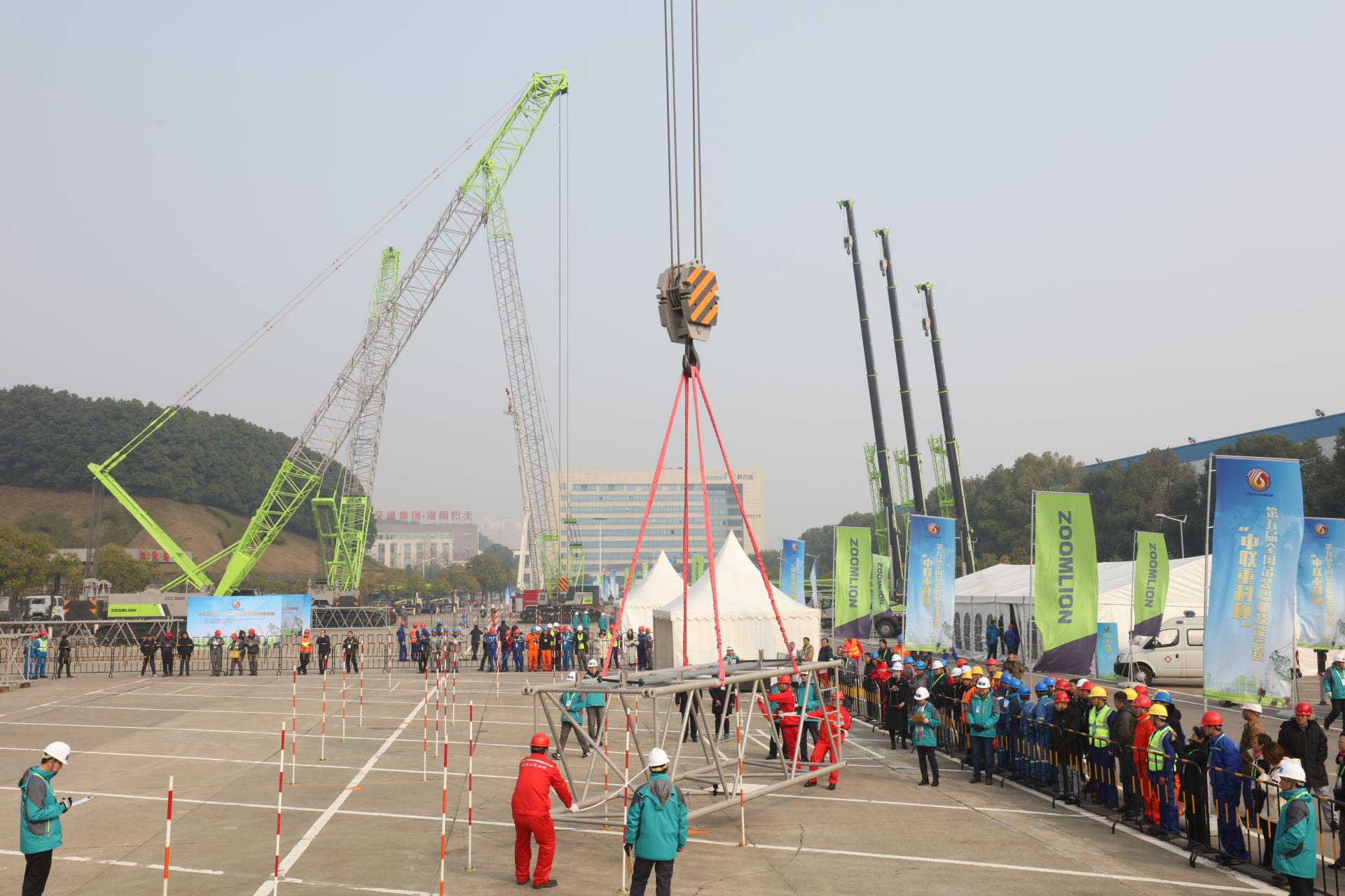 ▲“中聯(lián)重科杯”**五屆全國(guó)吊裝職業(yè)技能競(jìng)賽全國(guó)總決賽現(xiàn)場(chǎng)