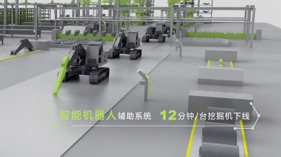 ? ? 總裝中心重要部位將全部采用自動擰緊力矩機(jī),扭矩合格率達(dá)到100%。同時,75%的待裝配零件采用機(jī)器人輔助上下線,處于行業(yè)領(lǐng)先水平,實現(xiàn)每12分鐘下線一臺挖掘機(jī)。