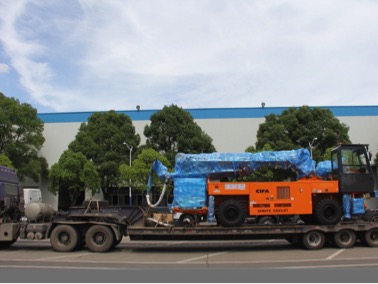 ▲中聯(lián)重科湖南CIFA本地化生產(chǎn)的濕噴機(jī)發(fā)往**三方市場(chǎng)塔吉克斯坦