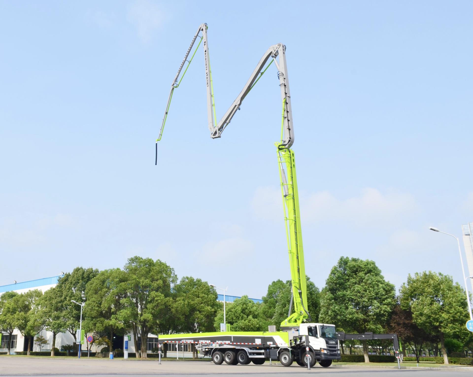 ▲中聯(lián)重科5橋67米泵車新品,臂架采用鏤空設(shè)計