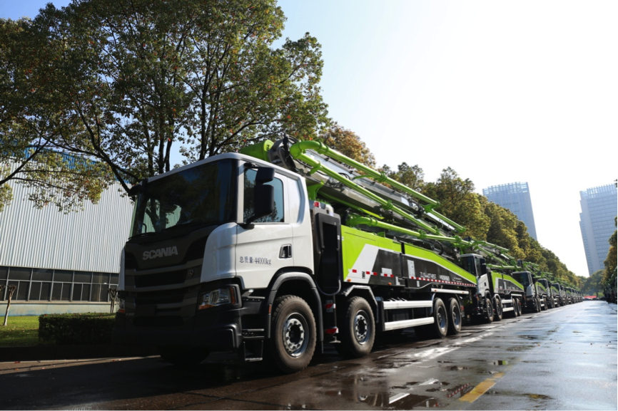 ▲中聯(lián)重科國(guó)六混凝土泵車整裝待發(fā)