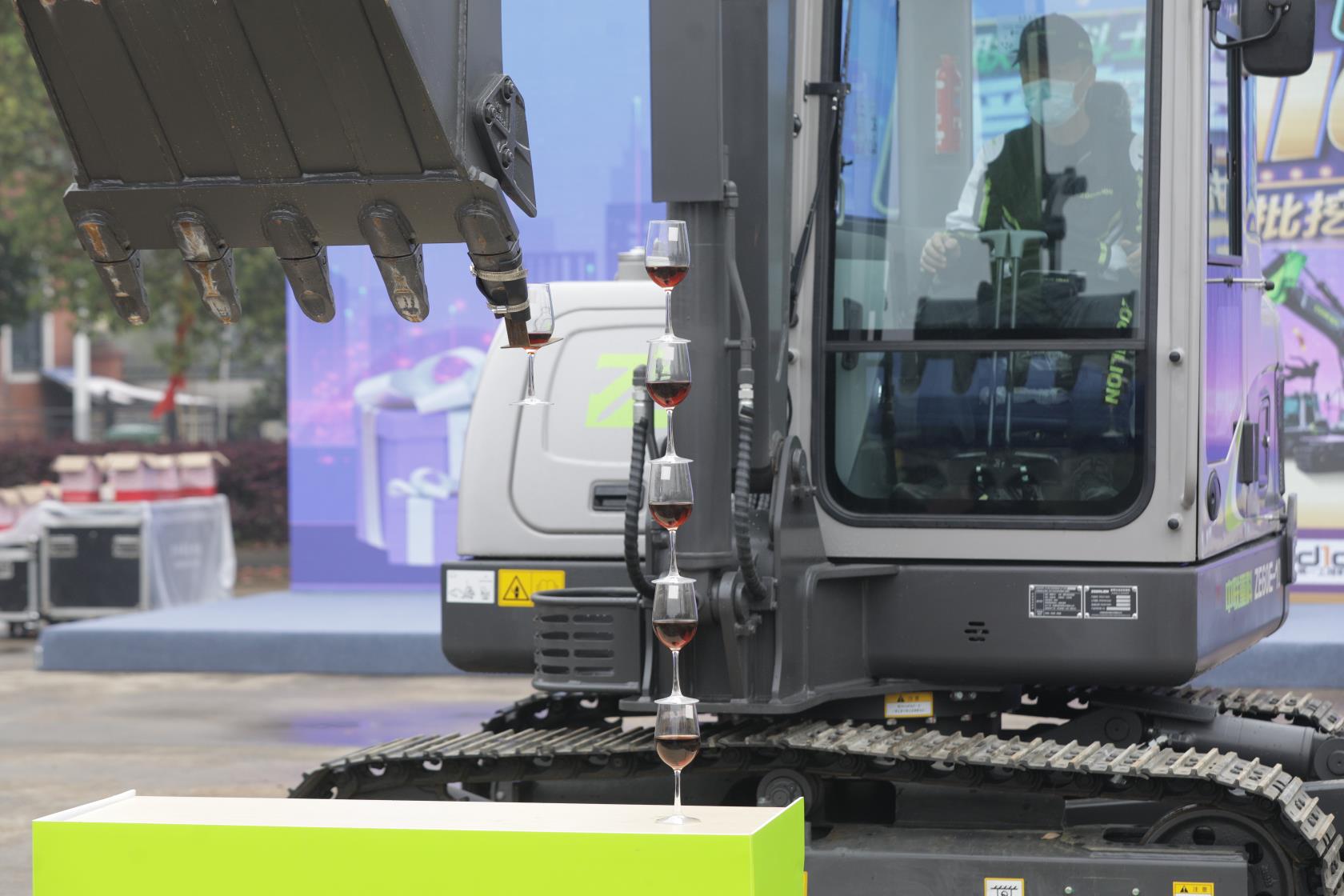直播現(xiàn)場(chǎng),中聯(lián)重科ZE60E-10挖掘機(jī)表演了連人手都很難操作的“疊酒杯”高難度動(dòng)作。只見(jiàn)機(jī)手輕松用鏟斗斗齒將裝滿紅酒的酒杯成功疊加在一起,里面的紅酒沒(méi)有一點(diǎn)傾灑,完美的“人機(jī)合一”讓人驚嘆。