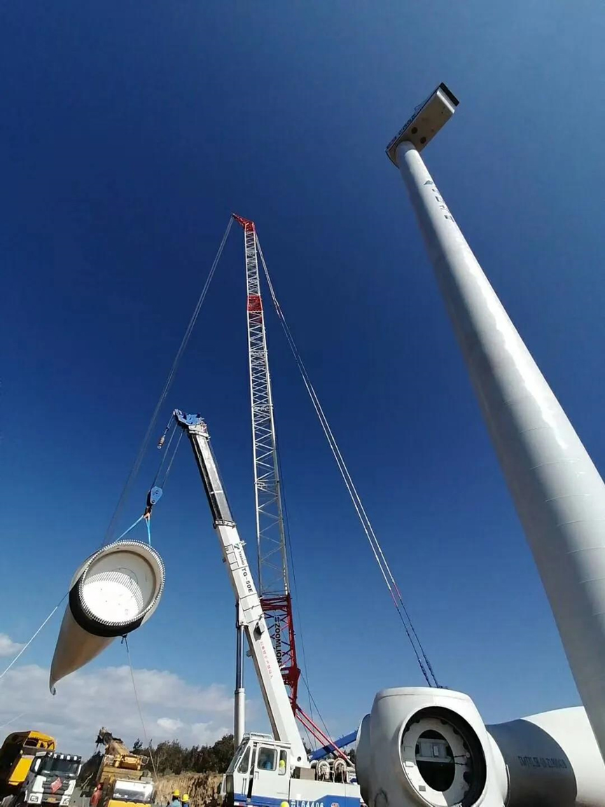 ?此次吊裝的機型單機容量3.3兆瓦,輪轂中心高度達100米,葉輪直徑達146米,掃風(fēng)面積16700余平方米,主臂102米,固定副臂7米;吊鉤**大起升高度可達106米,**大起重量140噸。隨著41號風(fēng)機葉輪緩緩上升與機艙傳動鏈合攏,標志著西南地區(qū)**大單機容量為3.3兆瓦的首臺風(fēng)機吊裝成功,同時該臺風(fēng)電機組刷新了云南省風(fēng)電機組**大功率等級紀錄,成為西南地區(qū)單機容量**大、單臺風(fēng)機功率**大、風(fēng)輪直徑**大、陸上海拔**高的發(fā)電機組。