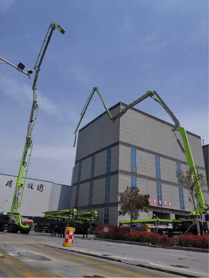 交付儀式上,一輛輛戴著大紅花的中聯(lián)重科泵車“小綠軍團”浩浩蕩蕩地駛?cè)霑?,?shù)十臺泵車臂架同時升起,直指云霄,氣勢磅礴。中聯(lián)重科服務工程師與藍泰工作人員順利進行了驗車交付。