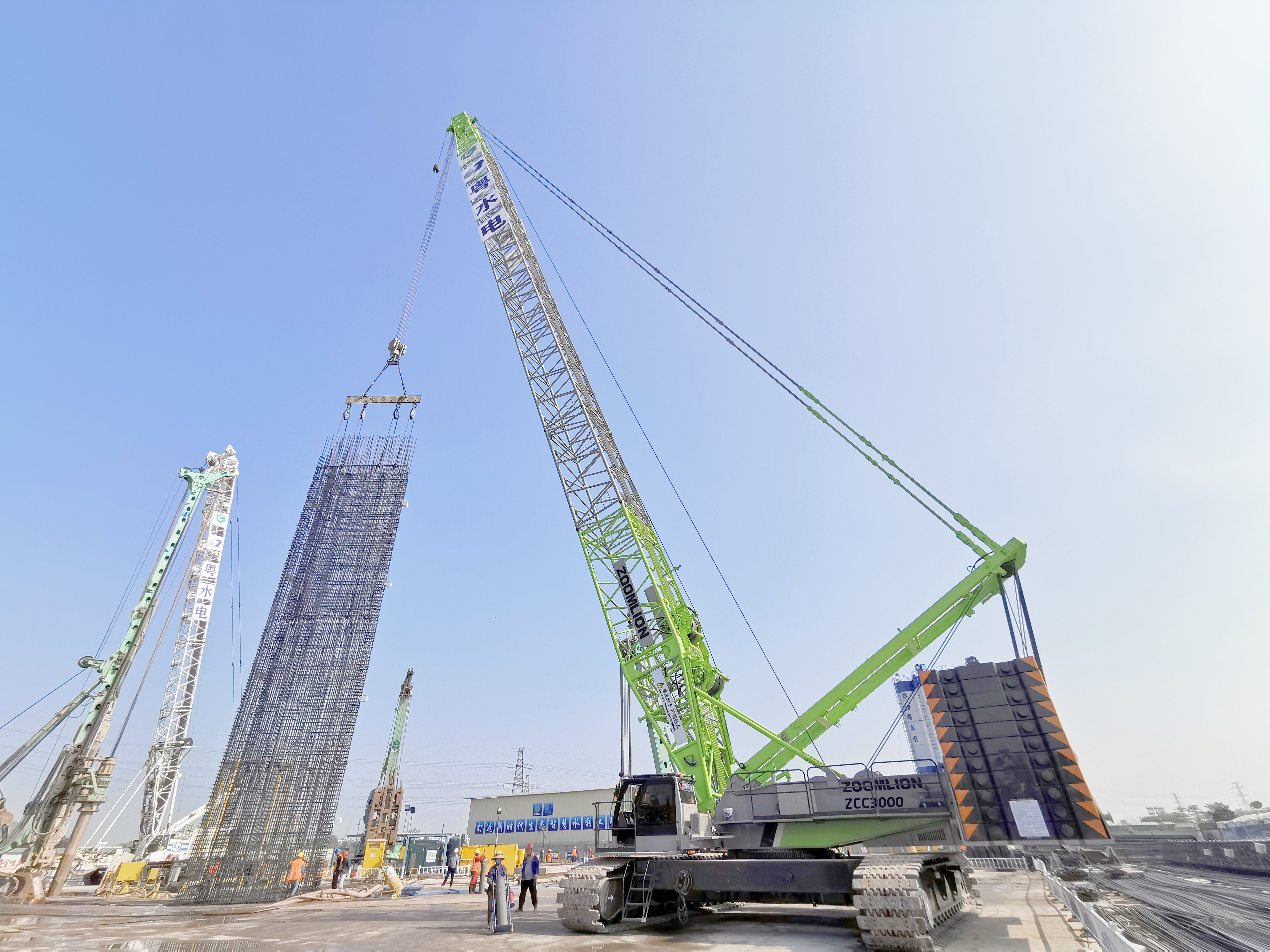 ? ?近日,中聯(lián)重科ZCC3000履帶式起重機亮相廣東佛山順德,助力粵港澳大灣區(qū)重要基礎(chǔ)設(shè)施項目——珠江三角洲水資源配置工程建設(shè)。ZCC3000履帶式起重機平穩(wěn)地將約50噸30米長的鋼筋籠順利吊裝入槽,整個作業(yè)過程各動作協(xié)調(diào)有序、一氣呵成。中聯(lián)重科卓越的產(chǎn)品性能、全方位的極致服務(wù)贏得了客戶高度稱贊。