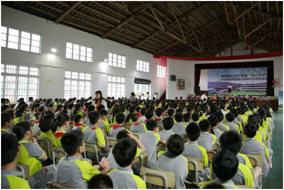 ▲湖南寧鄉(xiāng)市龍?zhí)镦?zhèn)九年制學校中聯(lián)重科客戶聯(lián)盟“聯(lián)愛助學”活動現場