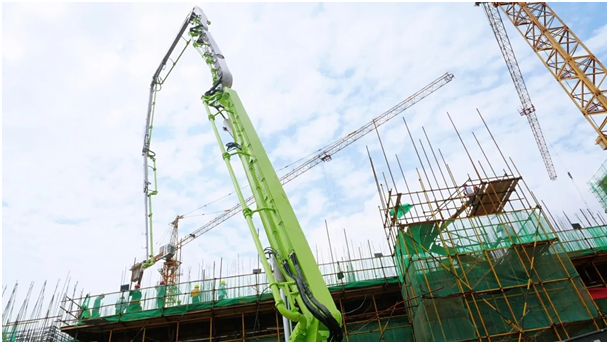 △中聯(lián)重科汕德卡底盤泵車在施工現(xiàn)場(chǎng)