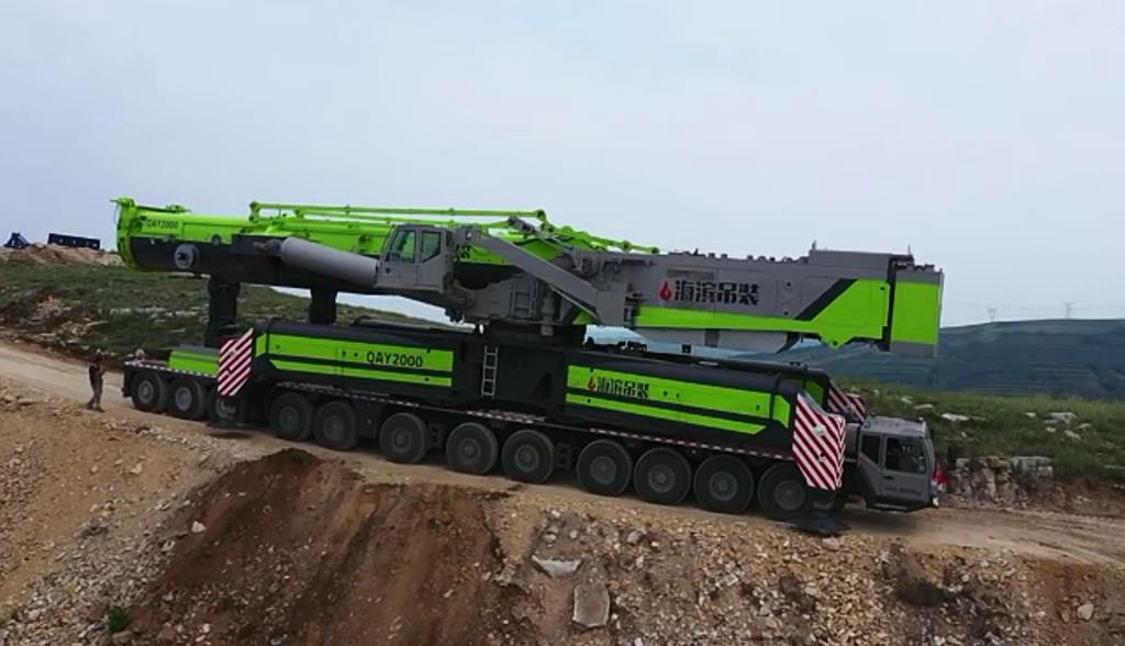 △在坡度為33%的工況下,中聯(lián)重科QAY2000全地面起重機(jī)重載轉(zhuǎn)場(chǎng)
