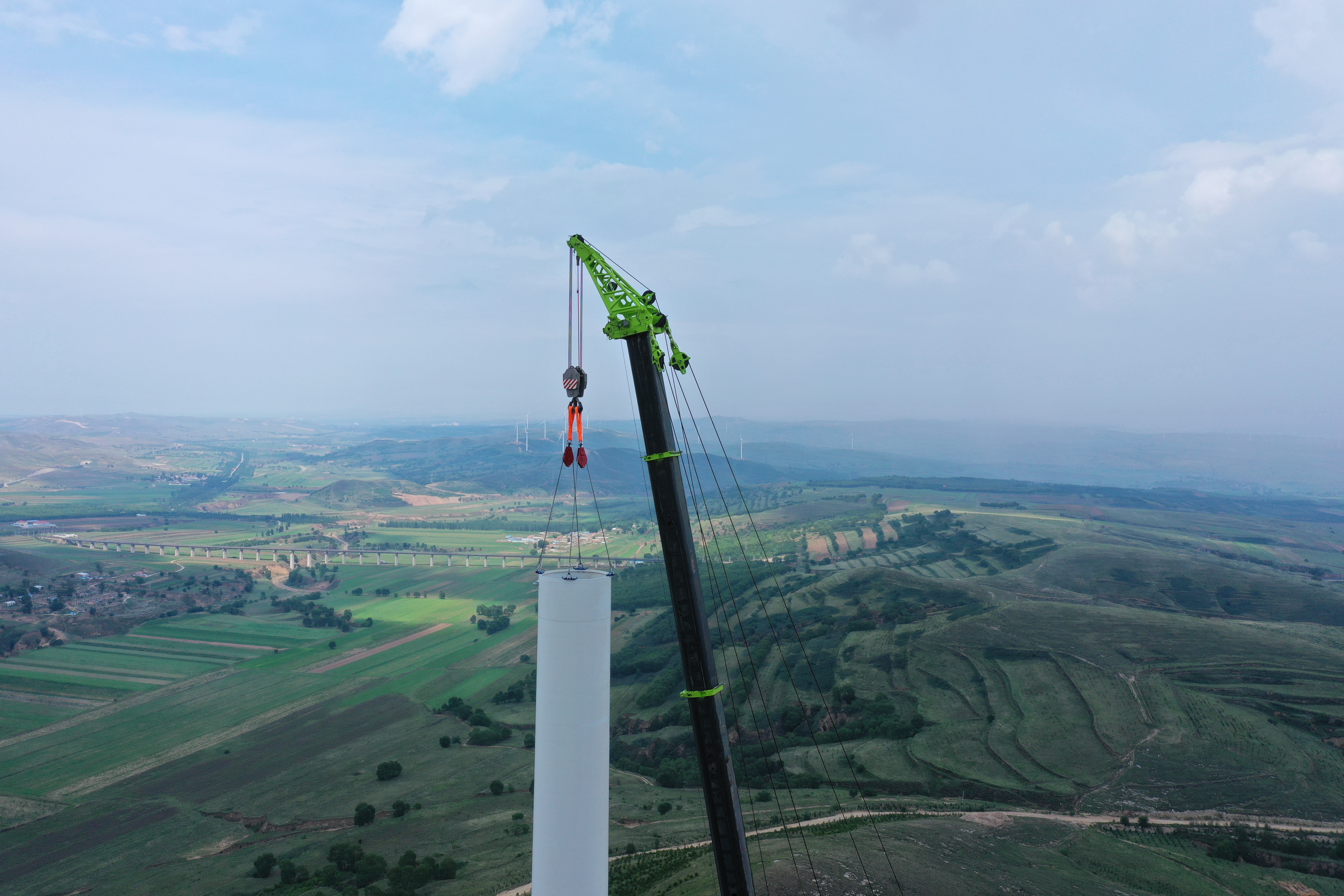 朔州市平魯區(qū)三面環(huán)山、海拔較高,素有“朔北雄城,塞外天險(xiǎn)”之稱。近年來(lái),隨著清潔能源發(fā)展的壯大,朔州平魯以豐富的風(fēng)力資源受到了風(fēng)電項(xiàng)目的重點(diǎn)關(guān)注,一座座風(fēng)力發(fā)電塔拔地而起傲立山頂,成為了平魯壯觀的風(fēng)景線。正在建設(shè)中的山西華電朔州平魯東平太100MW風(fēng)電安裝項(xiàng)目就坐落于此。而負(fù)責(zé)該項(xiàng)目31座風(fēng)力發(fā)電塔組裝工作的設(shè)備,正是中聯(lián)重科QAY2000全地面起重機(jī)。???