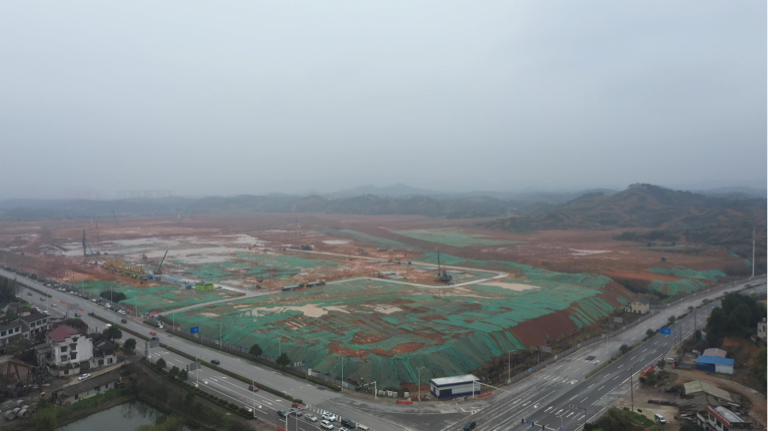 從去年開工至今年春節(jié)前,項(xiàng)目完成了強(qiáng)夯施工、場(chǎng)內(nèi)土方轉(zhuǎn)運(yùn)、廠房基礎(chǔ)正負(fù)零施工等步驟。今年年初疫情的發(fā)生雖然對(duì)項(xiàng)目進(jìn)展產(chǎn)生了不小的影響,但中聯(lián)智慧產(chǎn)業(yè)城克服重重困難于2月10日正式復(fù)工。