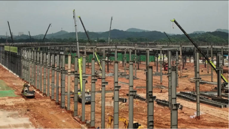 經(jīng)過三百多個(gè)日日夜夜的辛勤付出,建設(shè)目前已經(jīng)進(jìn)入“全面開花”階段,挖掘機(jī)械智能制造園區(qū)高強(qiáng)鋼備料中心、中大挖結(jié)構(gòu)件車間等六大單體鋼構(gòu)全面進(jìn)入主體吊裝階段,其中高強(qiáng)鋼備料中心6萬平米的鋼結(jié)構(gòu)安裝已全部完成,調(diào)試車間、中大挖裝配車間主體鋼構(gòu)已經(jīng)吊裝完成,正在進(jìn)行次結(jié)構(gòu)施工,其余廠房建設(shè)也在有序推進(jìn)當(dāng)中,“鋼鐵森林”已經(jīng)拔地而起。
