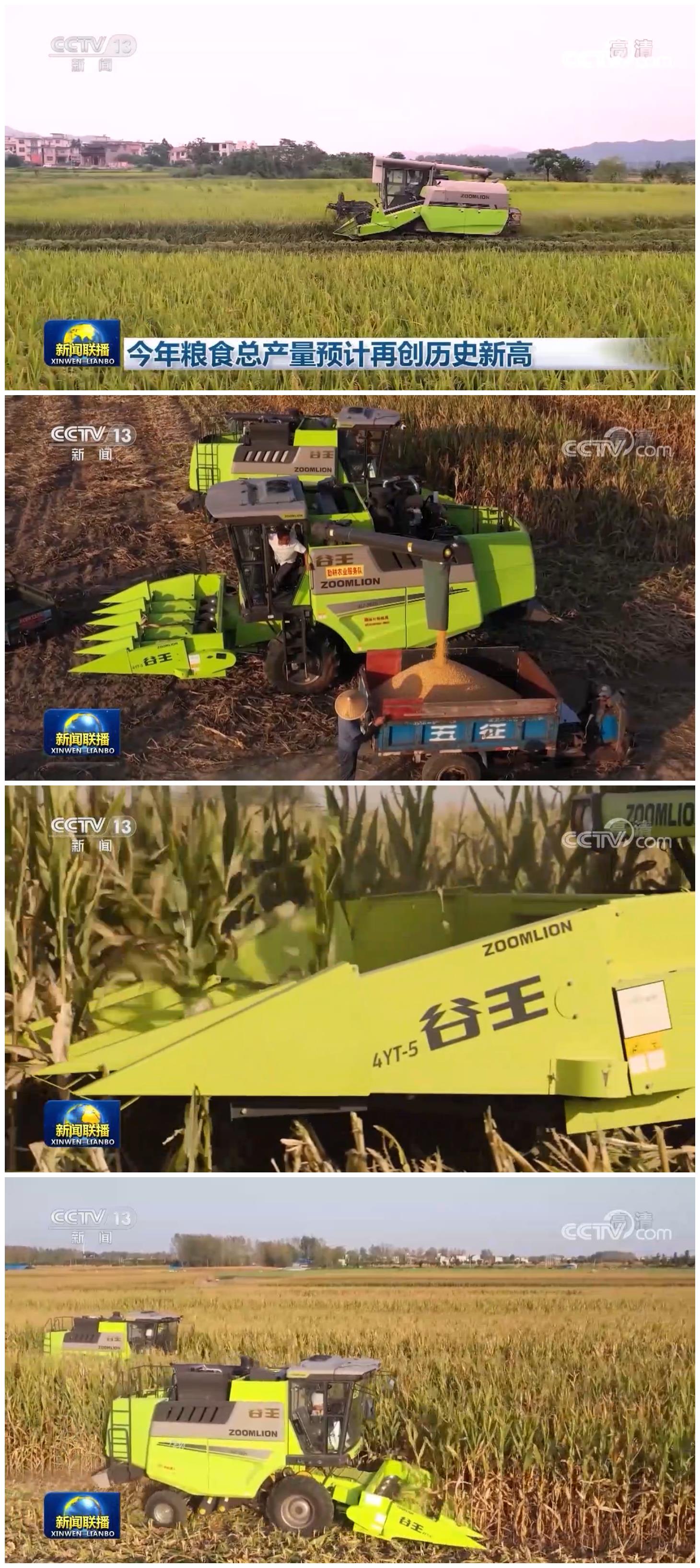 10月28日,中央電視臺《新聞聯(lián)播》播出了“今年糧食總產(chǎn)量預(yù)計再創(chuàng)歷史新高”的主題報道,聚焦農(nóng)業(yè)農(nóng)村部發(fā)布秋糧收獲接近九成,豐收已成定局,預(yù)計全年糧食總產(chǎn)量再創(chuàng)歷史新高,連續(xù)6年保持在1.3萬億斤以上。重點展示了中聯(lián)重科農(nóng)機(jī)產(chǎn)品在田間作業(yè)的工作畫面,一派豐收景象。