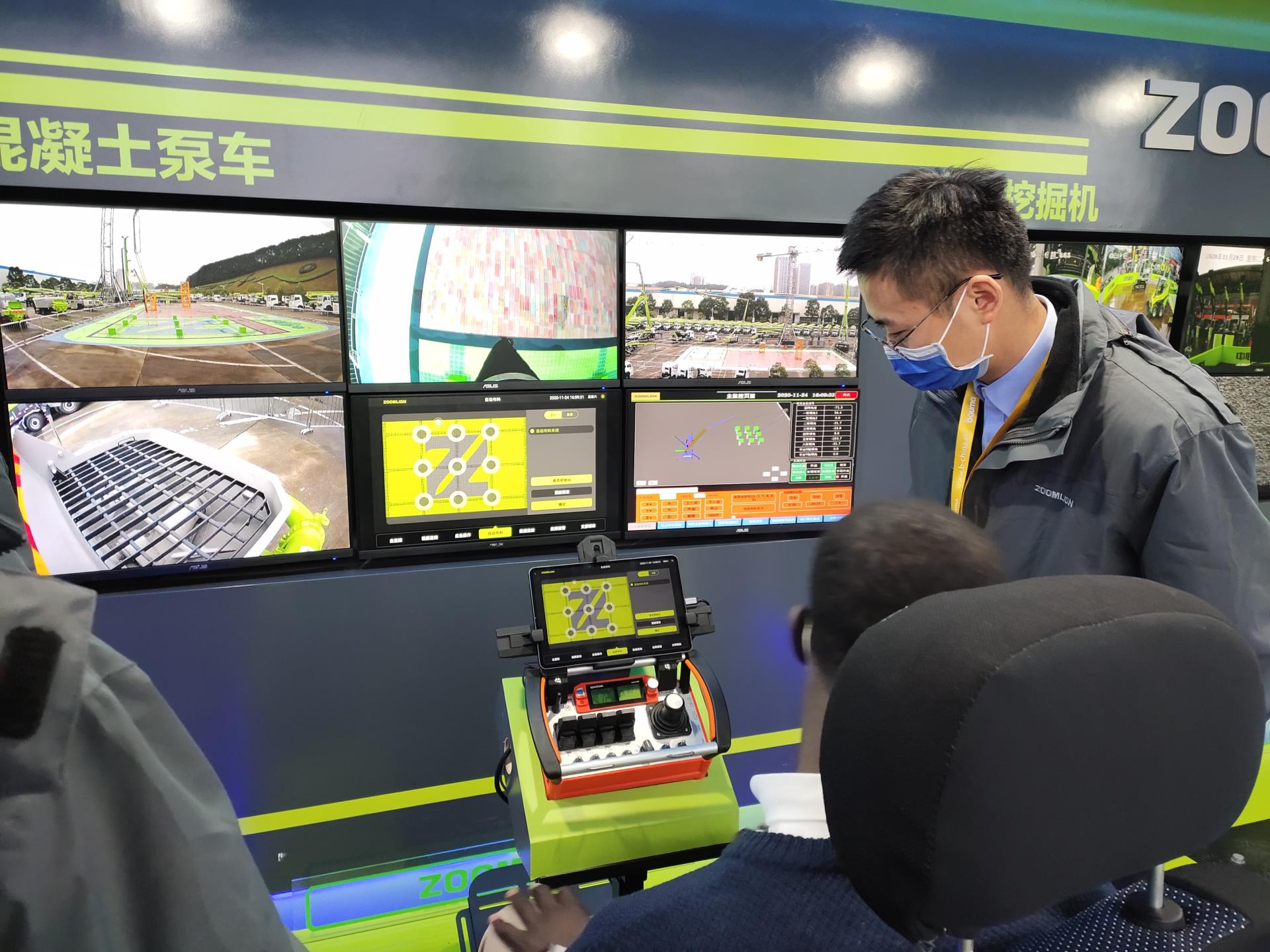 展會現(xiàn)場,一位客戶坐上混凝土泵車5G遠程操控體驗的開放式座椅,在眼前的平板電腦上隨意設(shè)置了一個布料路徑后,就通過正前方的監(jiān)控顯示屏看到了遠在長沙的泵車設(shè)備運作起來,并按照客戶所設(shè)置的路徑進行布料,非凡體驗讓客戶大呼過癮。