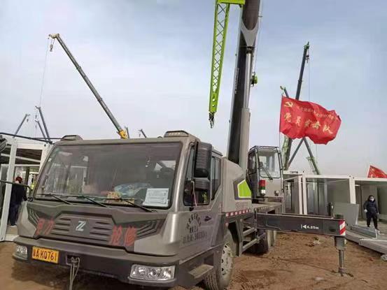 △中聯(lián)重科起重機(jī)正在石家莊的疫情防控集中隔離點(diǎn)作業(yè)