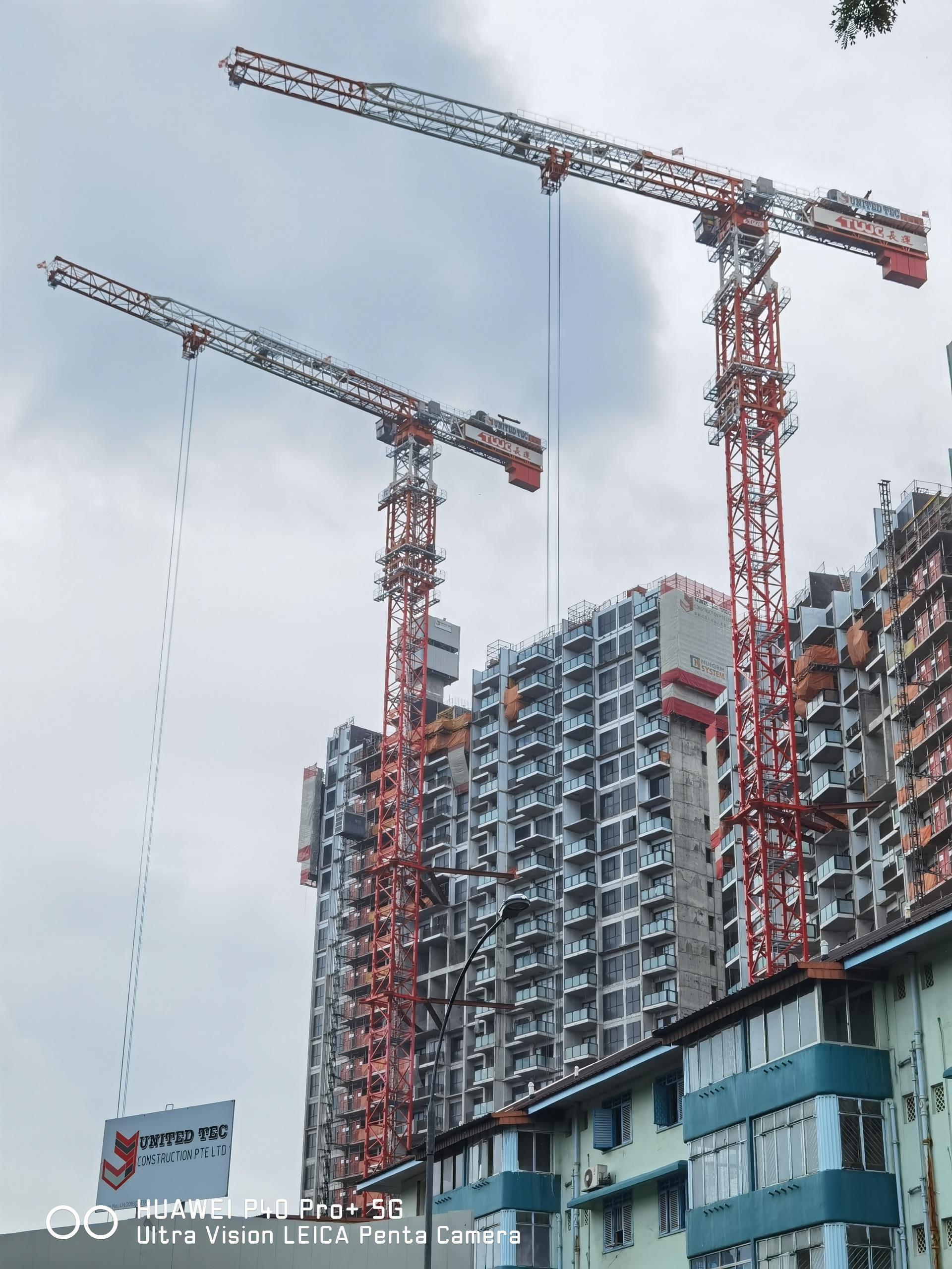 △中聯(lián)重科T1200-64W塔機(jī)在新加坡南峰雅苑住宅項(xiàng)目施工現(xiàn)場