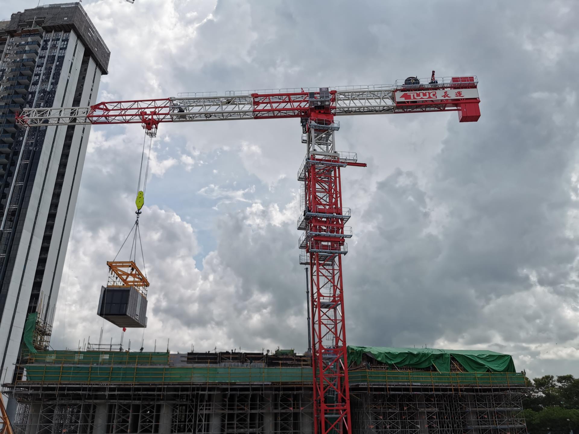 隨著建筑方式的創(chuàng)新,新加坡市場對參建設(shè)備的性能需求也發(fā)生了變化。中聯(lián)重科建筑起重機(jī)械公司亞特區(qū)服務(wù)工程師姚建軍介紹道:“新加坡從2017年開始推出使用PPVC建筑方式,所有預(yù)制件的單件重量超過30噸,部分預(yù)制件單件重量甚至達(dá)到40多噸,導(dǎo)致整個(gè)市場對塔機(jī)需求發(fā)生了巨大變化,對塔機(jī)的起重性能及安全性有了更多新要求,逐漸大量使用起重力矩1000噸米及以上的平頭塔機(jī)?!?/span>
