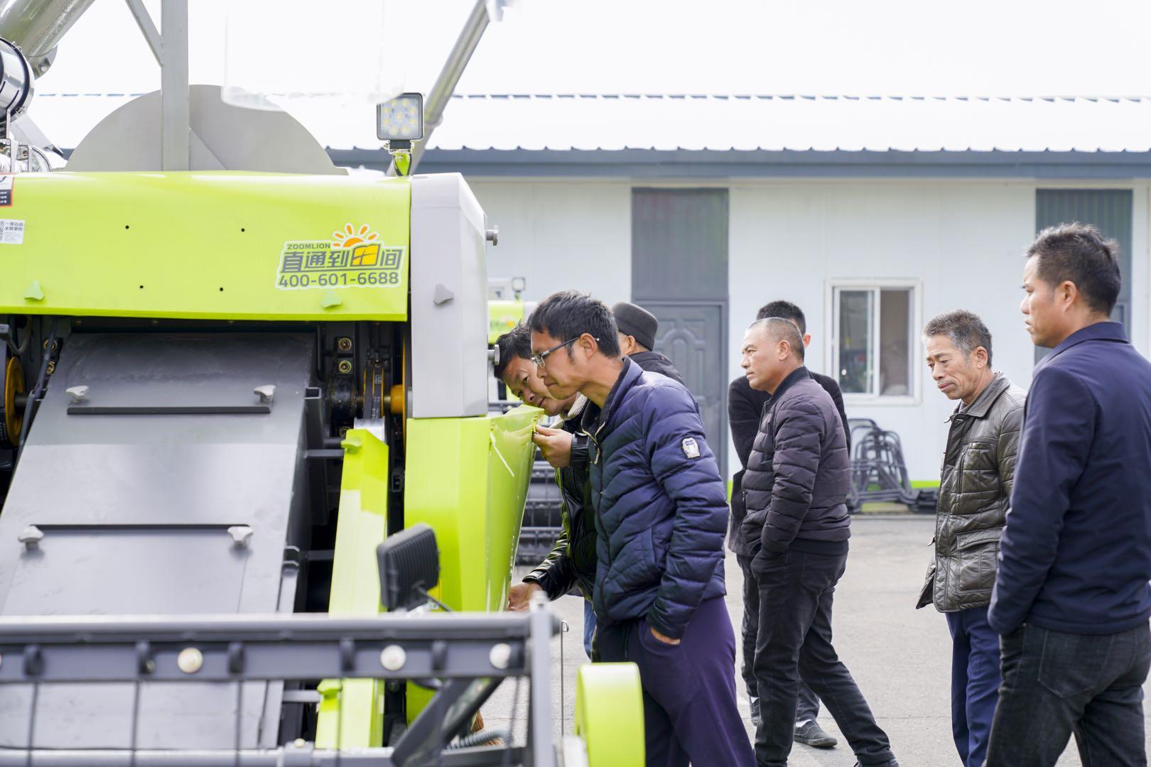 △中聯(lián)農(nóng)機(jī)沅江形象店揭牌儀式上,廣大客戶觀摩中聯(lián)重科高端農(nóng)機(jī)