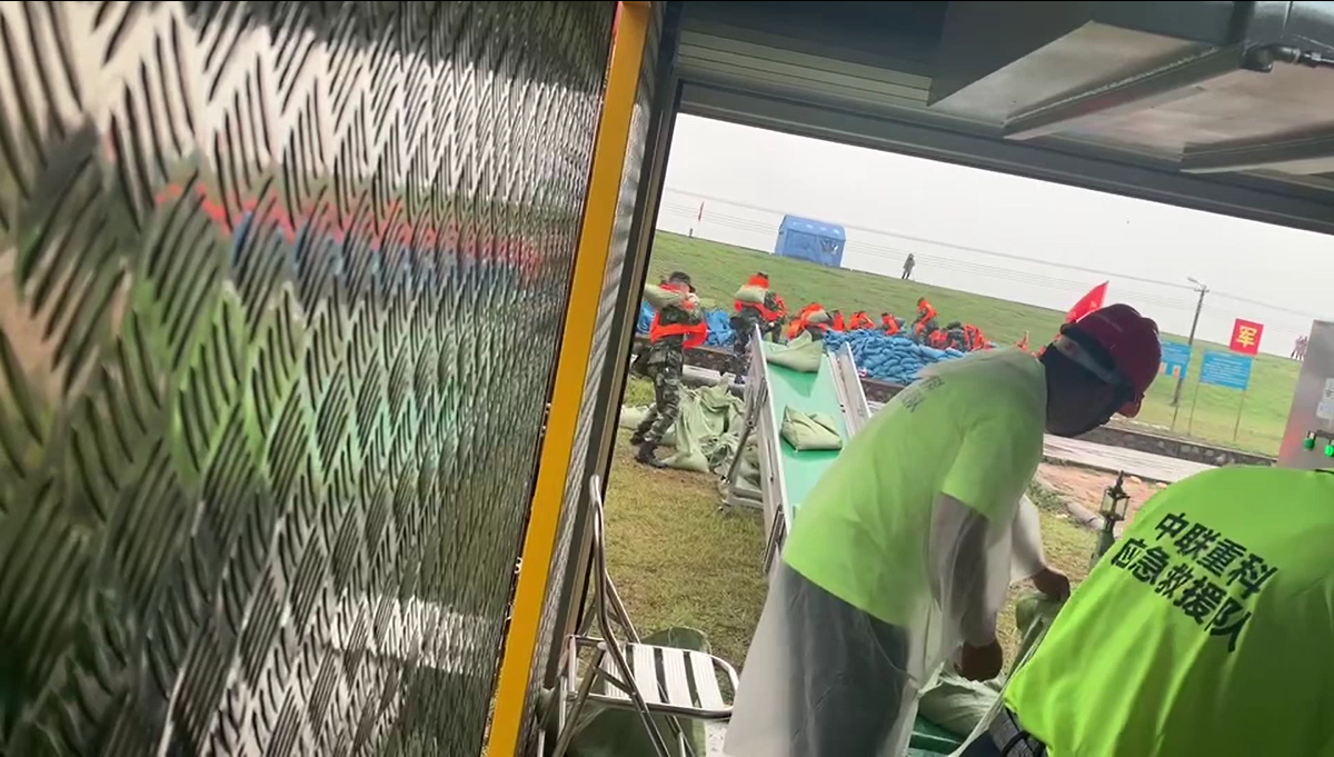 在正式演練中,中聯(lián)重科應(yīng)急砂石打包模塊車擔(dān)當(dāng)管涌圍堵科目演練的主力裝備,應(yīng)急救援隊員嚴(yán)格按照應(yīng)急預(yù)案密切配合開展該科目的演練,利用應(yīng)急砂石打包模塊車對堤壩加高加固和圍井搭建所需大量砂石進(jìn)行機械化快速打包和投送,高效搭建起反濾圍井和堤壩,在演練中僅用幾分鐘就完成了以往傳統(tǒng)管涌圍堵打包幾小時的工作量。