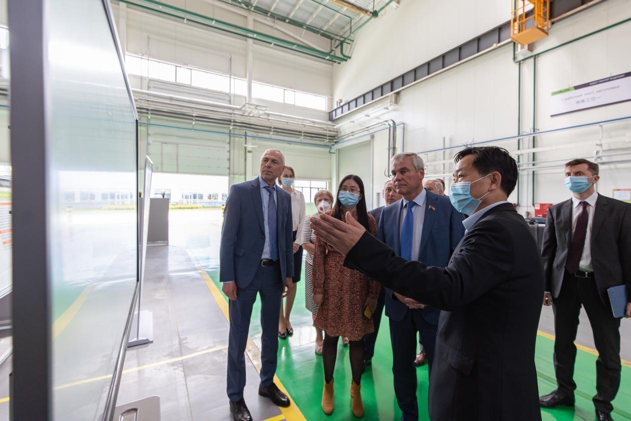 安德烈琴科一行詳細(xì)觀摩了中聯(lián)重科在白俄當(dāng)?shù)卮蛟斓摹氨镜鼗逼嚻鹬貦C(jī)產(chǎn)品、參觀了生產(chǎn)車間,詳細(xì)了解公司業(yè)務(wù)發(fā)展情況,對中聯(lián)重科生產(chǎn)制造技術(shù)、智能制造以及強(qiáng)大的市場競爭力予以充分肯定,并勉勵(lì)公司在俄語區(qū)實(shí)現(xiàn)更大發(fā)展。
