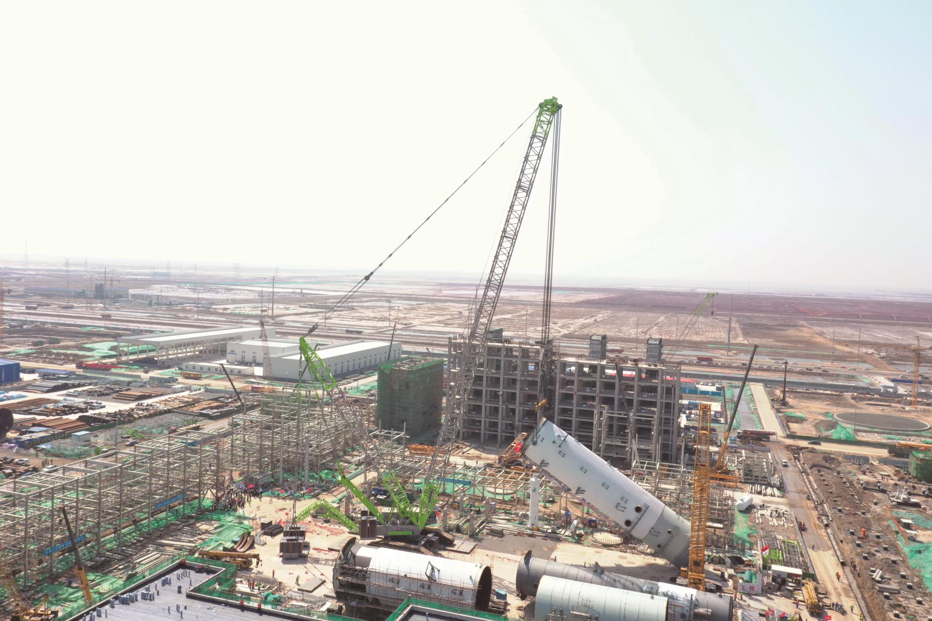 其中,丙烯丙烷分離塔是丙烷產(chǎn)業(yè)鏈項目的核心設備之一,用于分離丙烯與丙烷。該項目中,丙烯丙烷分離塔重達770噸,相當于500多臺小汽車的重量,吊裝難度可想而知。為確保吊裝一次性成功,項目決定使用吊裝經(jīng)驗豐富的中聯(lián)重科設備作業(yè)。