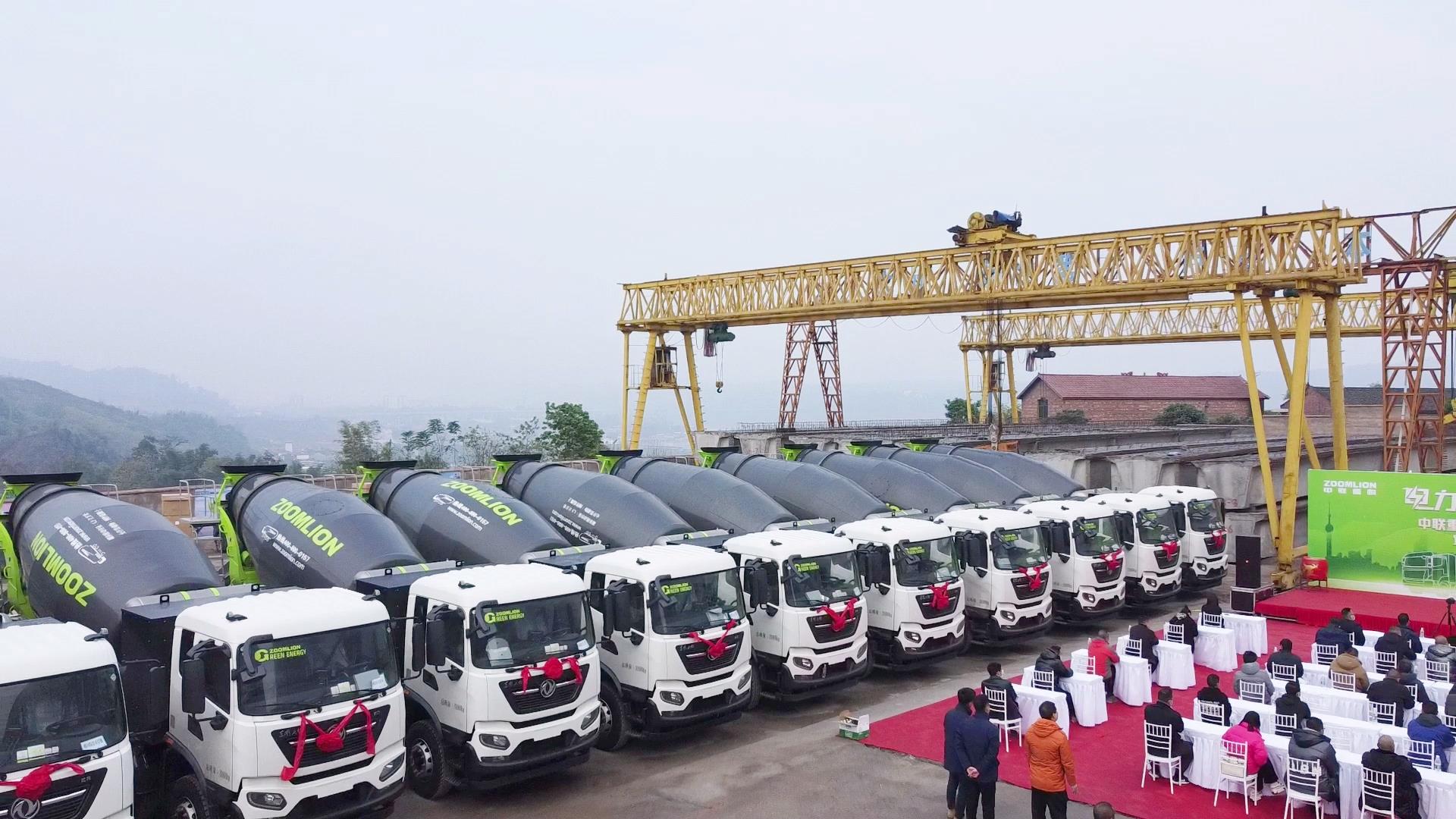 12月29日上午,20臺中聯(lián)重科充電式攪拌車頭戴紅花整齊列陣,批量交付宜賓華陽科技有限公司。冬日暖陽下,醒目的極光綠熠熠生輝,這批新能源匠心精品將以極致性能、強(qiáng)勁節(jié)能,為客戶鋪就綠色低碳的快速發(fā)展之路。