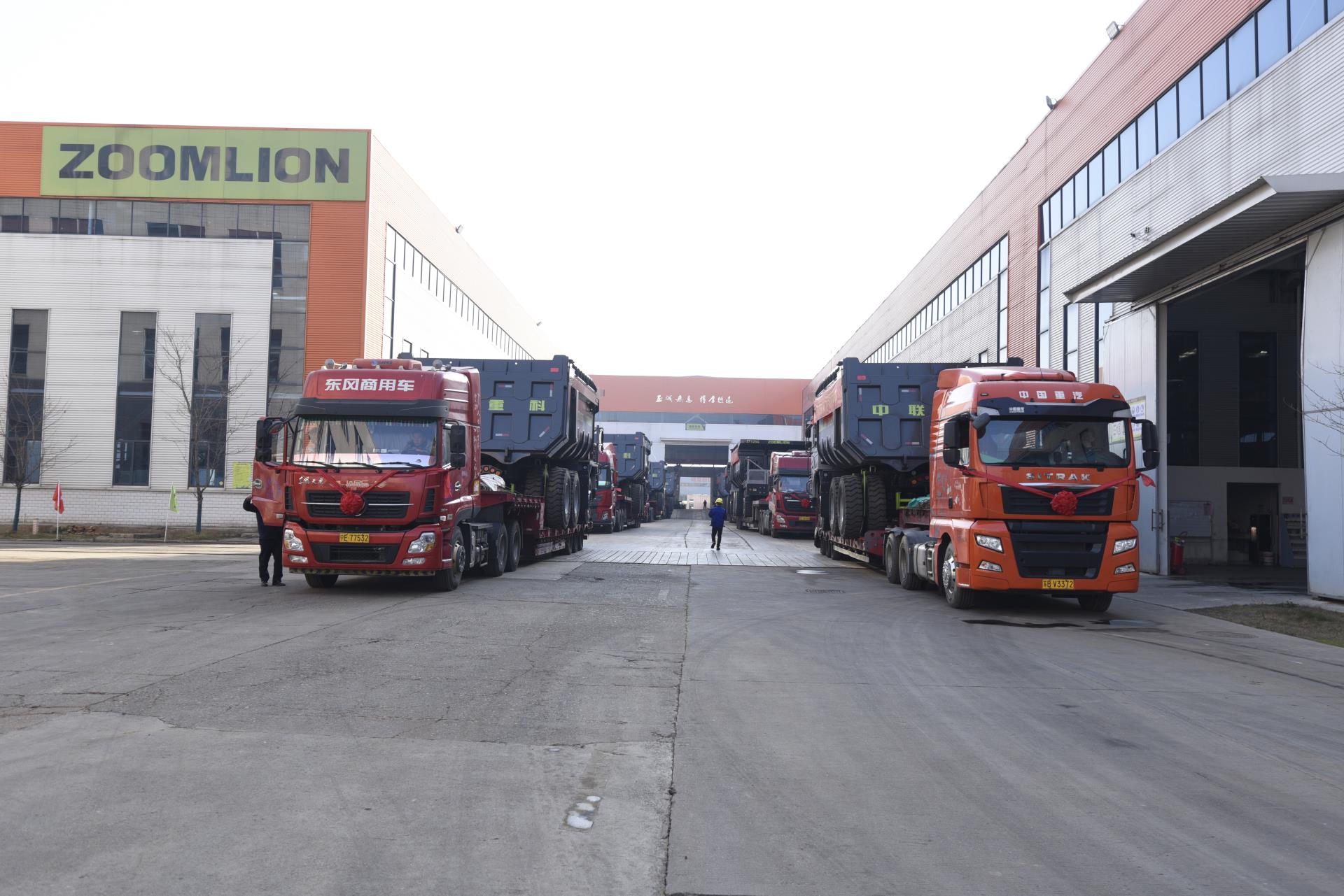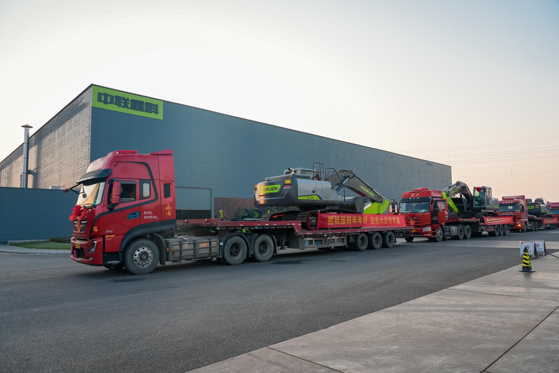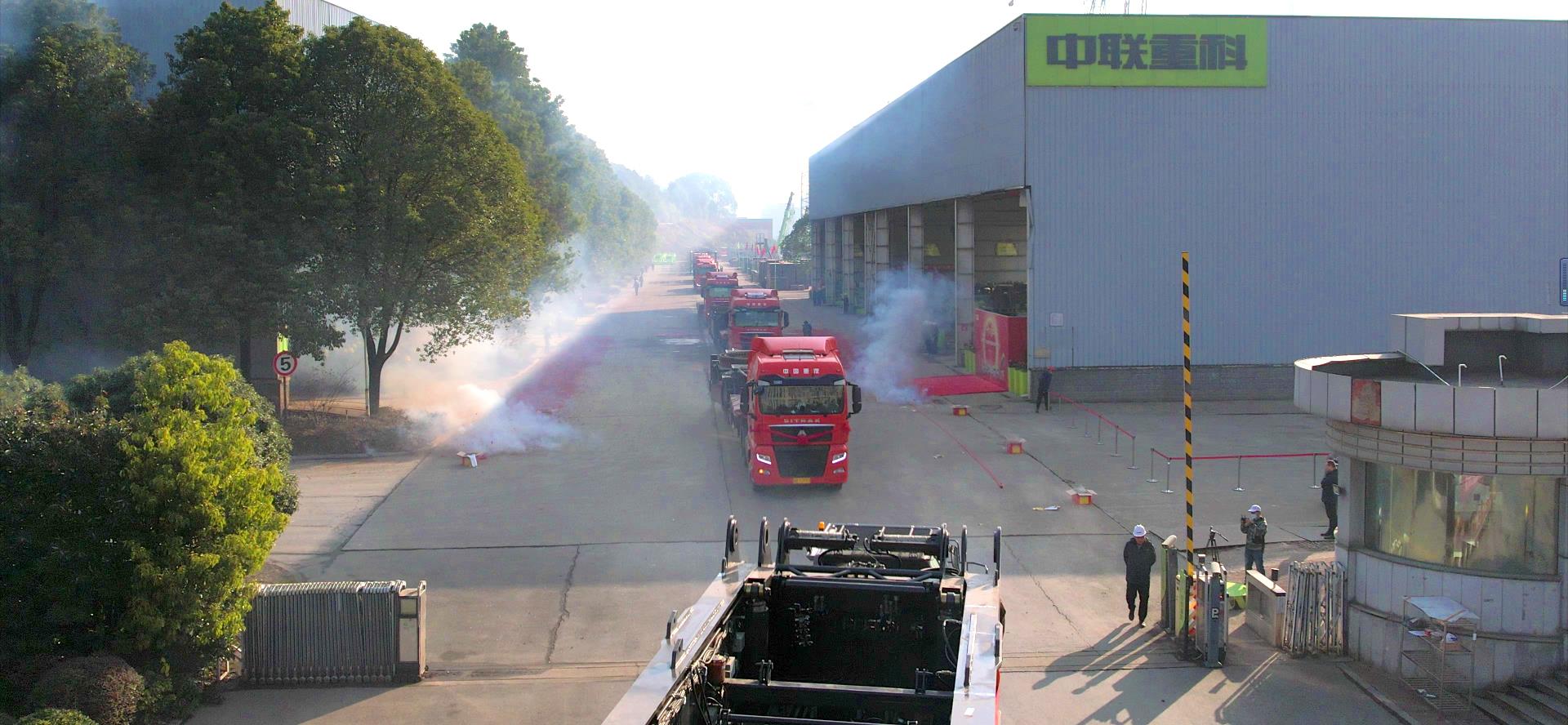 ▲中聯(lián)重科工業(yè)車輛開門紅批量發(fā)往海外