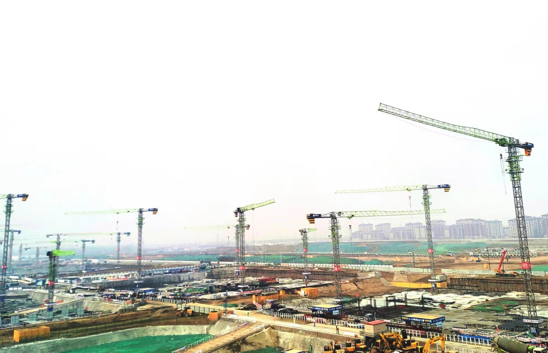 ▲中聯(lián)重科全新R代塔機(jī)挺立“未來(lái)之城”雄安
