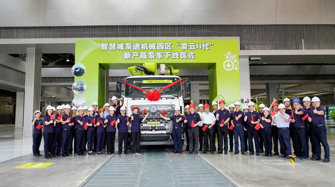 ▲中聯(lián)重科“凌云Ⅱ”新品泵車下線儀式現(xiàn)場