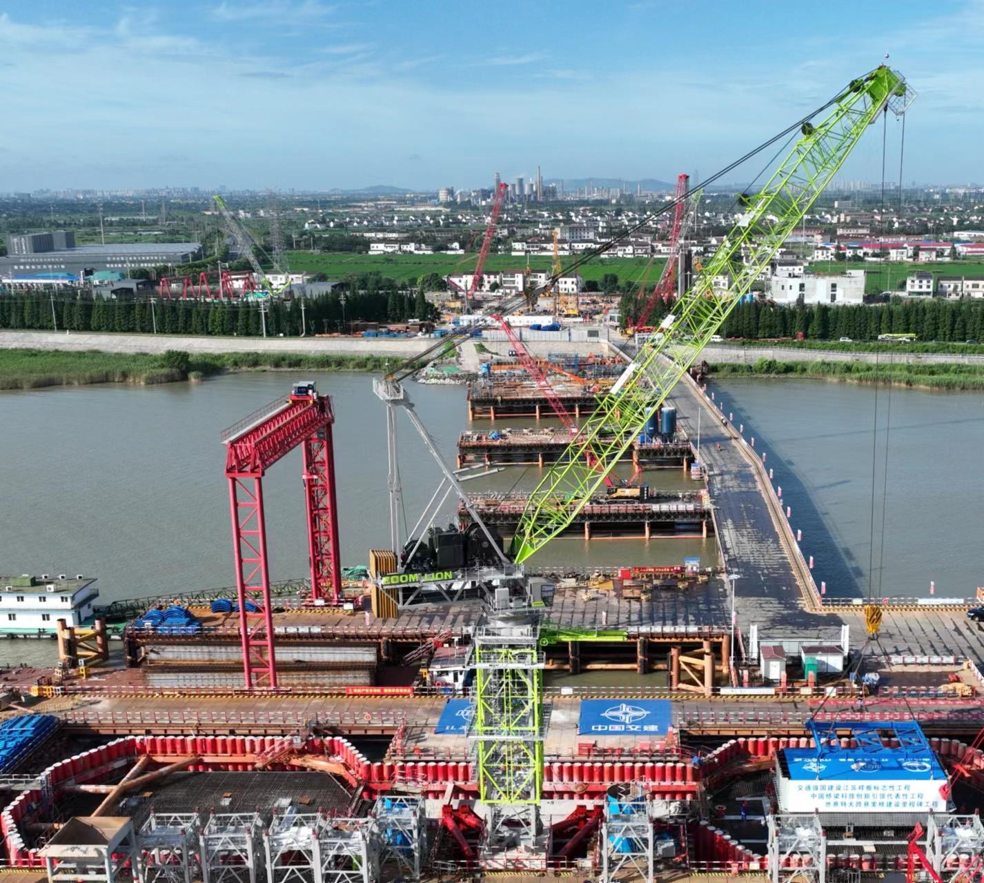 據(jù)了解,張靖皋長江大橋后續(xù)還將迎來中聯(lián)重科打造的全球首臺超萬噸米塔機(jī)W12000-450和R8000-320等多臺超大型塔機(jī)的傾情助力。這些大國重器將為這一大國工程建設(shè)提供堅實的設(shè)備保障。