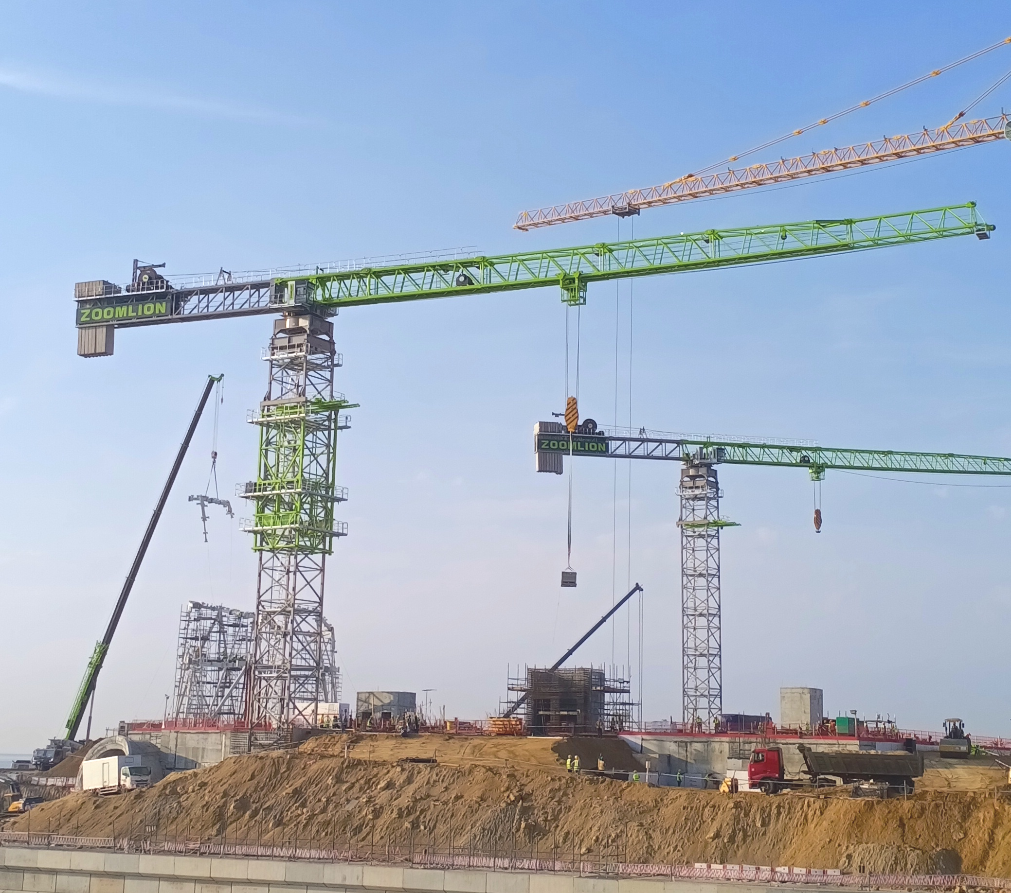 該項目采用超大鋼結構和混凝土預制模式,大部分施工場景位于海平面以下,在嚴格保障工期的同時,對設備的吊裝性能和精度要求非常高。中聯(lián)重科R2300-80Q塔機采用模塊化結構,拼裝速度快,安裝難度低,其**大臂長可以擴展到100米,**大起重量80噸,起升機構采用零速非制動懸停技術,可實現(xiàn)重載懸停10分鐘,低速點動響應快,微動性能強,可以實現(xiàn)重載毫米級別的控制精度,完美滿足項目需求,為現(xiàn)場鋼結構的安裝提供了有力保障,投用后得到項目方高度認可。