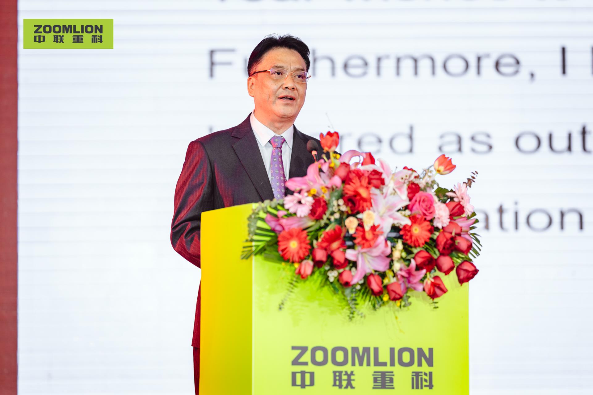 ▲中聯(lián)重科聯(lián)席總裁、中聯(lián)重科工程起重機(jī)公司總經(jīng)理羅凱在現(xiàn)場發(fā)言