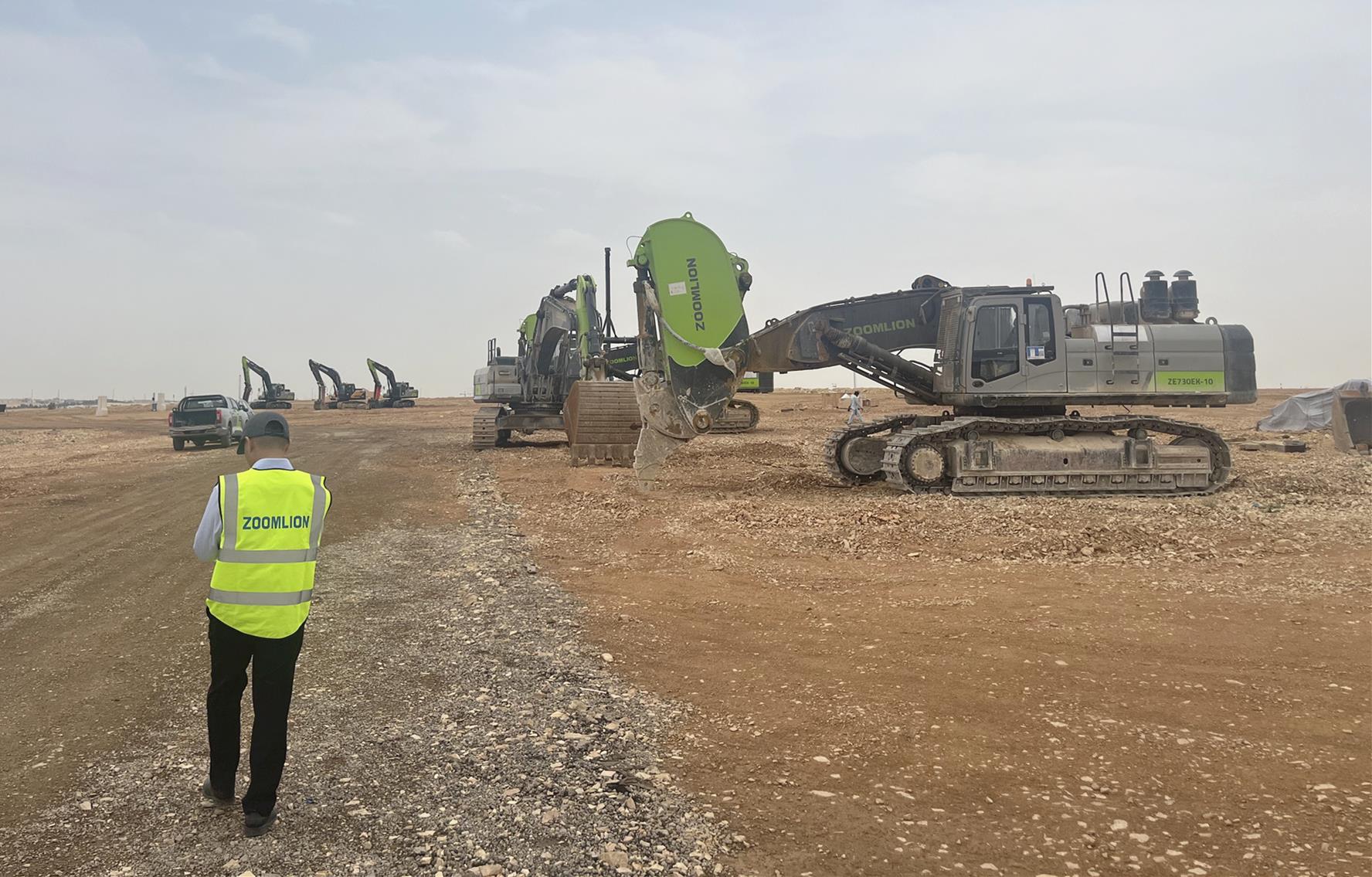近日,在建全球**大單體建筑——沙特利雅得穆卡布四方城項(xiàng)目傳來捷報,在數(shù)十臺中聯(lián)重科挖掘機(jī)助力下,項(xiàng)目建設(shè)再迎新突破,其土方包項(xiàng)目不到半年時間完成土方開挖460萬方,累計(jì)完成近66%的工程進(jìn)度,遠(yuǎn)超業(yè)主預(yù)期計(jì)劃。中聯(lián)重科挖掘機(jī)穩(wěn)定、高效地作業(yè)受到高度肯定。