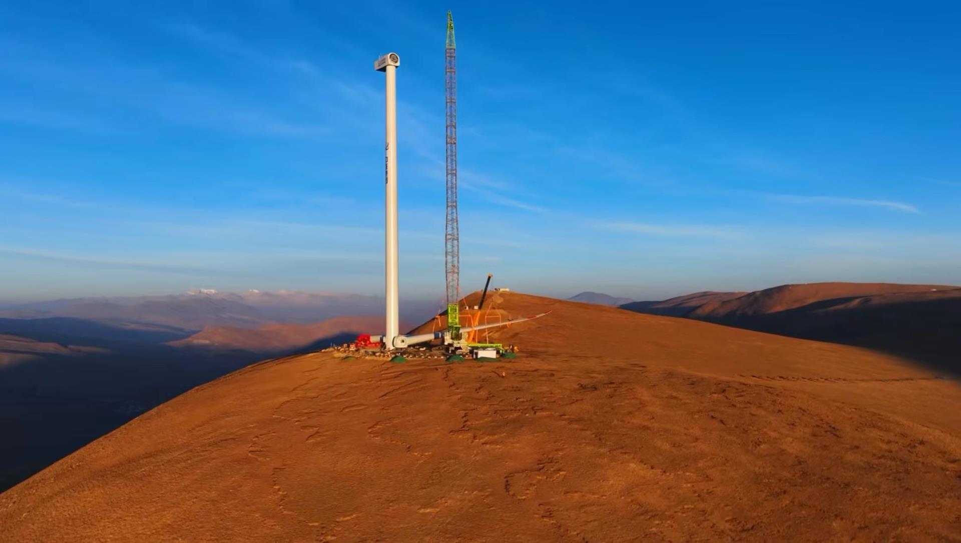 中核薩迦30萬(wàn)千瓦風(fēng)光儲(chǔ)一體化項(xiàng)目風(fēng)電場(chǎng)區(qū)位于喜馬拉雅山北麓,距離珠穆朗瑪峰僅140公里左右,**高海拔達(dá)到5193米,是目前世界上在建海拔**高、單體容量**大的風(fēng)電項(xiàng)目。此次吊裝風(fēng)機(jī)塔筒高102米,輪轂中心高105米,單葉片長(zhǎng)度達(dá)90米,葉輪直徑達(dá)183米,吊裝的基礎(chǔ)海拔即高達(dá)4987米,總海拔高度達(dá)5092米。