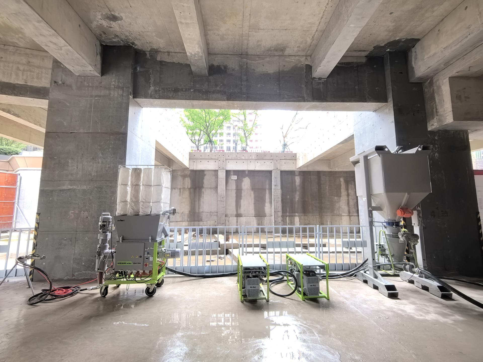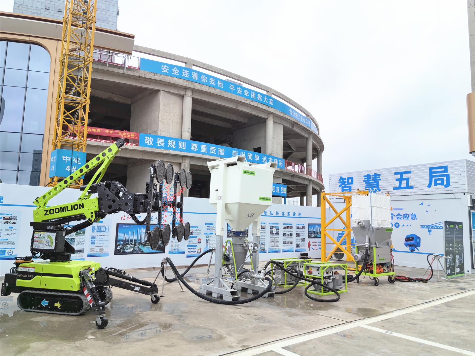據(jù)介紹,中聯(lián)重科為項目量身打造的墻面機械化施工解決方案——“可機施水泥基輕質(zhì)抹灰砂漿+GDP/Duomix+機械化施工的新工藝工法”,在多環(huán)節(jié)運用傳感器聯(lián)動,實現(xiàn)了“智能化運作,一鍵啟停”,施工現(xiàn)場無粉塵排放,無干粉濕漿落地,無需清洗輸送管道,具有安全、高效、綠色環(huán)保等顯著優(yōu)勢。