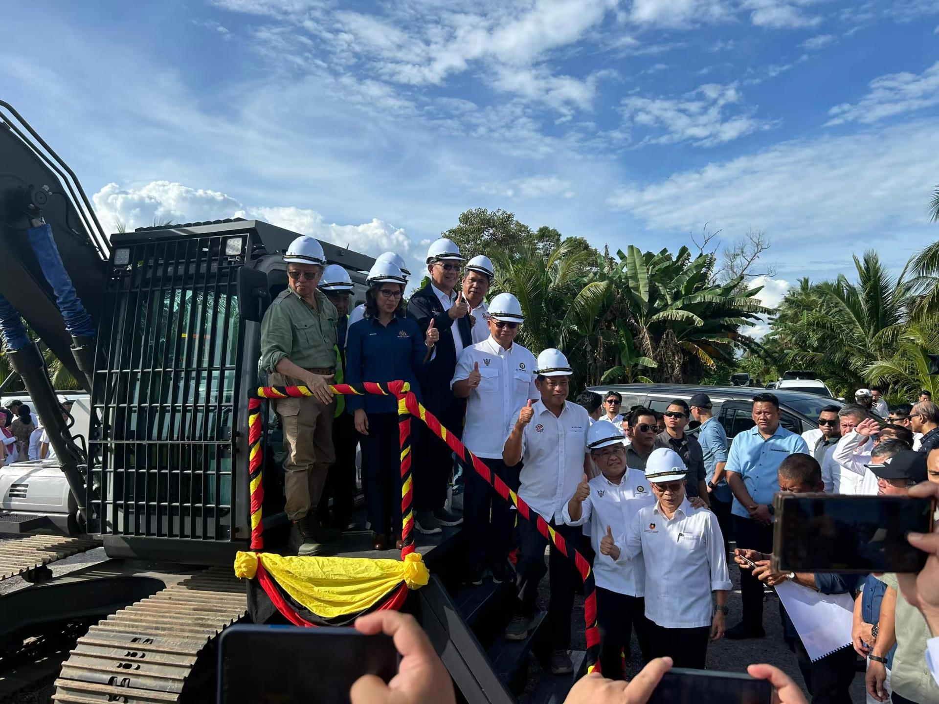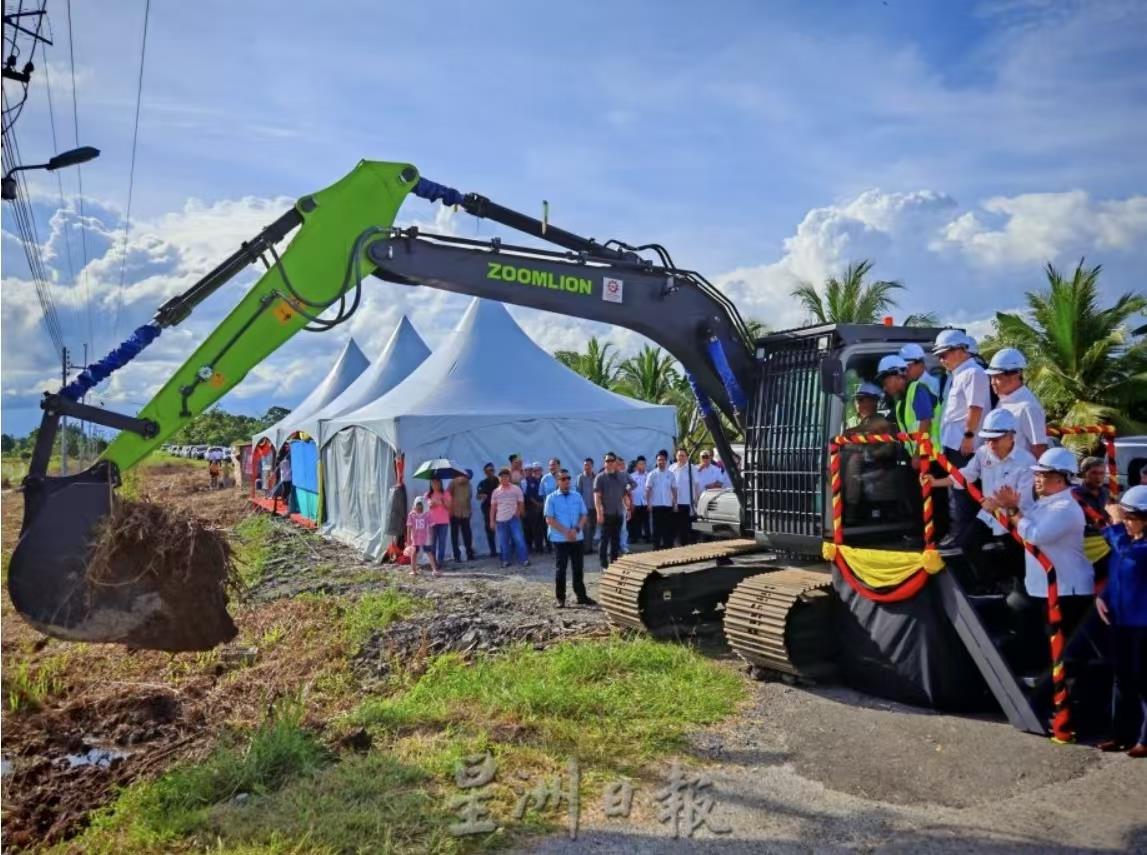 △儀式現(xiàn)場的中聯(lián)重科挖掘機(圖片來源:馬來西亞《星洲日報》)