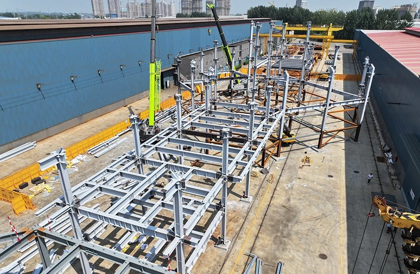 △中聯(lián)重科起重機(jī)吊裝羅斯海新站預(yù)拼裝鋼結(jié)構(gòu)