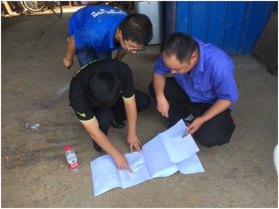 ▲針對設(shè)備問題服務(wù)小分隊(duì)的成員正在討論解決方案