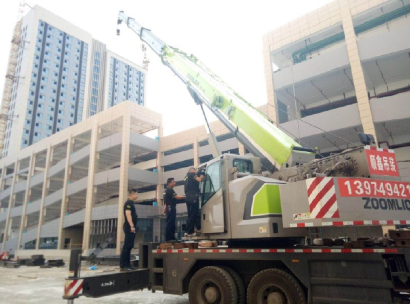 在簡單的午餐后,小分隊(duì)再趕往該公司的**二個(gè)工地,檢查一臺2009年交付的70T履帶吊,該車在工地吊裝鋼筋籠、澆灌混凝土,對電氣、液壓、結(jié)構(gòu)件進(jìn)行了例檢,發(fā)現(xiàn)行走驅(qū)動輪、履帶板磨損較大,將常規(guī)保養(yǎng)和日常操作等告知了設(shè)備主管。