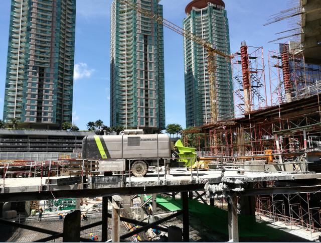 ▲中聯(lián)重科塔機(jī)與拖泵在泰國(guó)施工