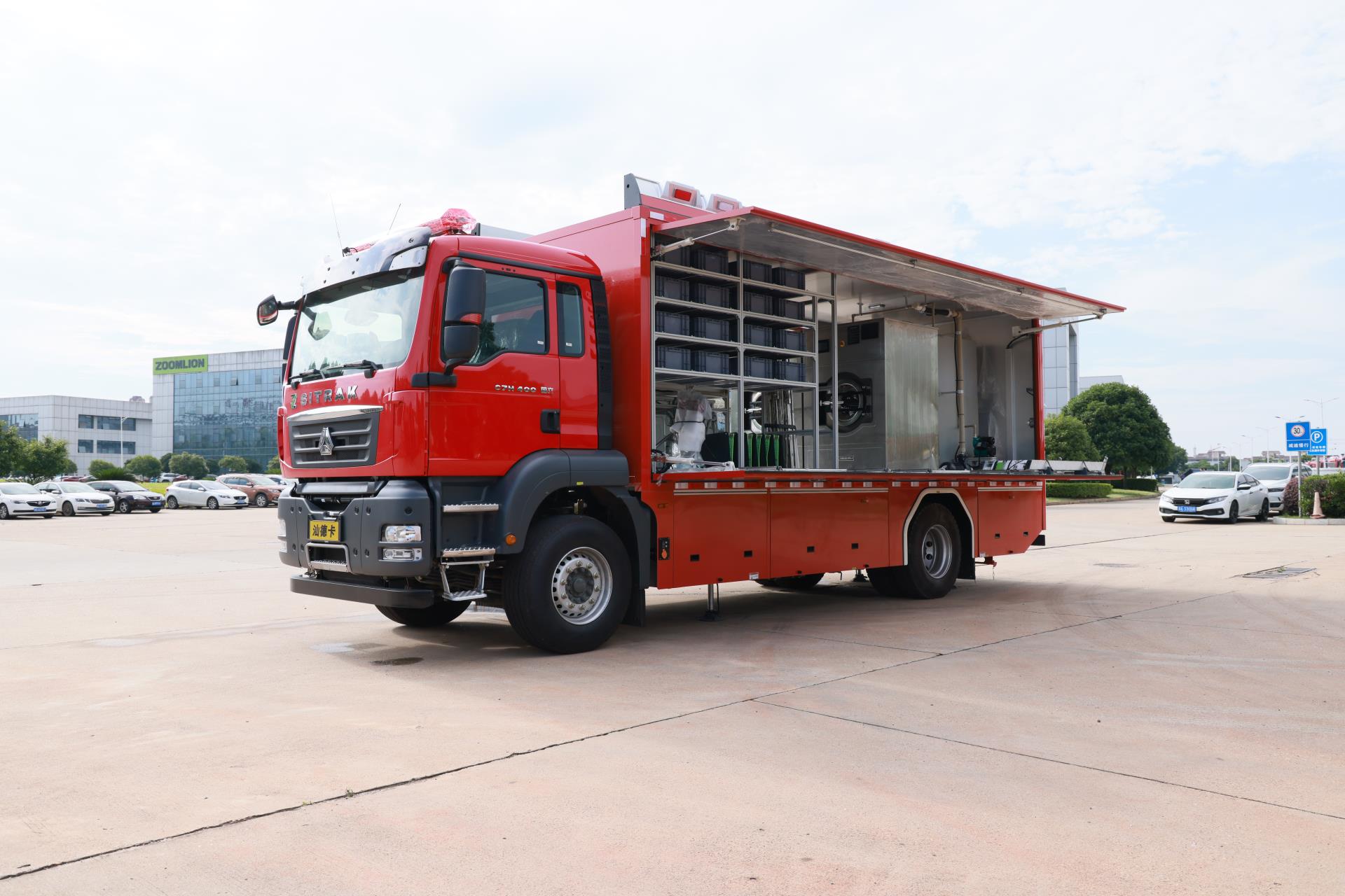 ? ? ??中聯(lián)牌QC20消防車是中聯(lián)重科與湖南省消防救援總隊聯(lián)合研制的全新被服洗滌消防車。整車性能優(yōu)越、操作方便、適應(yīng)性強,具備發(fā)電、供水、污水收集、照明等自我保障能力,集洗脫、烘干等多功能于一體,適用于大規(guī)模、長時間、遠距離、高頻次的應(yīng)急救援和演練的后勤保障。擁有近十項專利及多項創(chuàng)新技術(shù)。