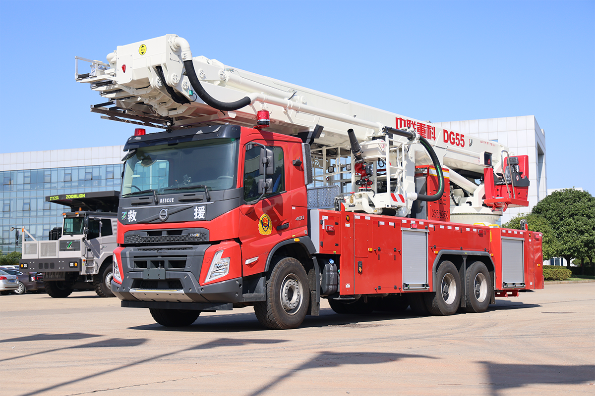 中聯(lián)牌DG55B6型55米登高平臺消防車,采用5+2雙伸縮臂結(jié)構(gòu),配置大流量水力系統(tǒng)及智能控制系統(tǒng),整車滅火能力及高空救援能力強悍,動作平穩(wěn)快捷,操作簡便。適用于城鎮(zhèn)、港口、工礦企業(yè)高層建筑以及石油、化工、油罐、倉庫等大型建筑滅火及救援。