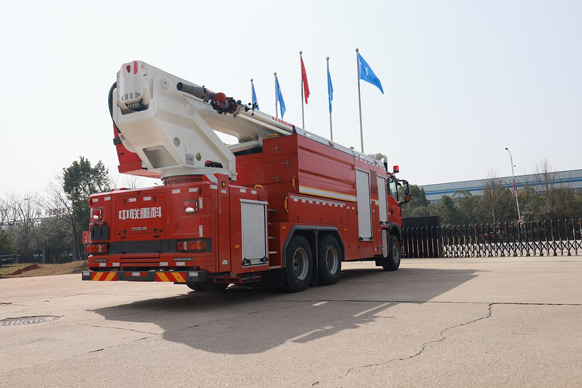 中聯(lián)牌36米舉高噴射消防車(以下簡稱高噴車)是一種消防高空滅火裝備,主要用于城鎮(zhèn)、工礦企業(yè)高層建筑以及石油、化工、油罐、倉庫等高大建筑物的火災(zāi)撲救。該車選用重汽HOWO專用底盤改裝,裝備美國希爾RSD100型中低壓消防泵,整車外形美觀、動力強(qiáng)勁、操作方便、作戰(zhàn)速度快、射程遠(yuǎn)、流量大。本高噴車可全方位回轉(zhuǎn),各機(jī)構(gòu)性能均由液壓驅(qū)動,操作簡便靈活,消防實(shí)戰(zhàn)滅火作業(yè)時展開迅速,運(yùn)作平穩(wěn),安全可靠。本車帶有水罐、消防泵,臂架頂端的消防炮射程遠(yuǎn),流量大,即可打直流,又可噴霧,可以在距火源較遠(yuǎn)的位置獨(dú)立完成救火作業(yè),是當(dāng)今世界上較理想的高空消防滅火裝備。
