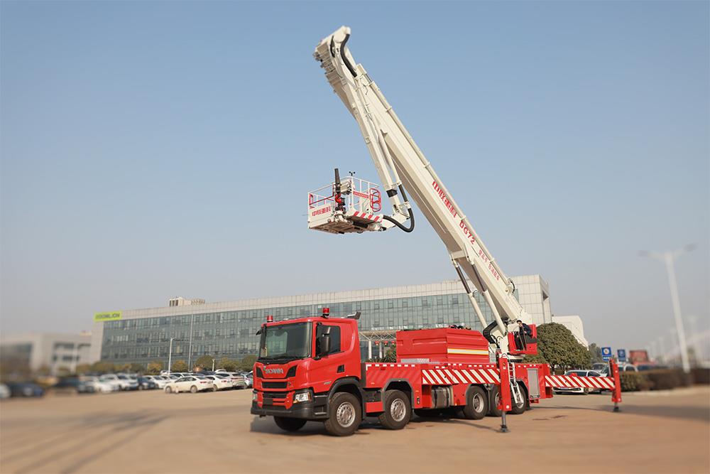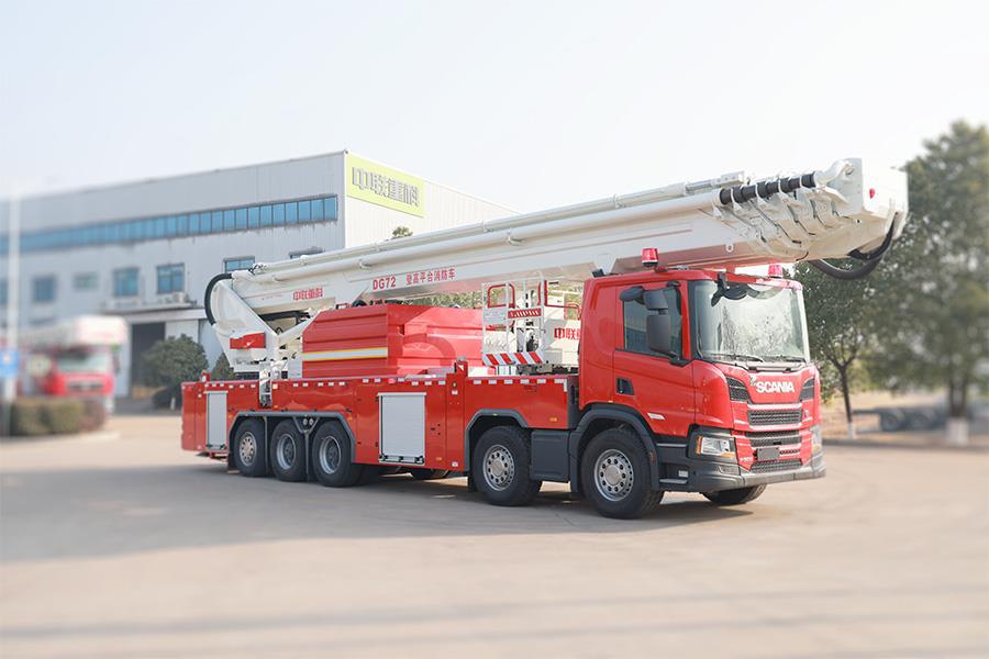 ? ? ? ?中聯(lián)牌DG72A6型登高平臺消防車,采用6+2雙伸縮臂結(jié)構(gòu),配置大流量水力系統(tǒng)及智能控制系統(tǒng),整車滅火能力及高空救援能力強(qiáng)悍,動作平穩(wěn)快捷,操作簡便。適用于城鎮(zhèn)、港口、工礦企業(yè)高層建筑以及石油、化工、油罐、倉庫等大型建筑滅火及救援。