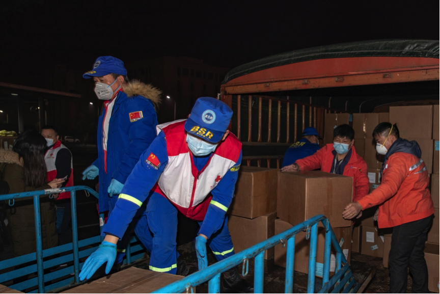 △中聯(lián)重科采購的疫情防護物資運抵長沙后立即交接給湖南省紅十字會