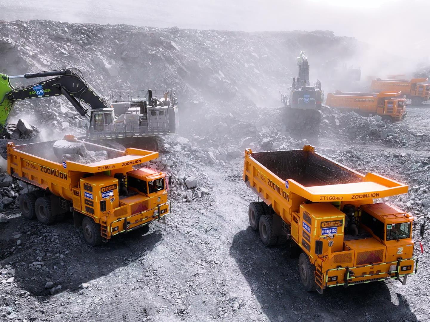 黑山煤礦數百臺載重100噸混動寬體車ZT160HEV(定制涂裝)與ZE1350G礦挖組成百噸級礦山黃金搭檔,憑借卓越的性能、便捷的維護和可靠的使用體驗,在實際作業(yè)中展現出強大優(yōu)勢,獲得客戶的高度評價,成為行業(yè)綠色高效新標桿。